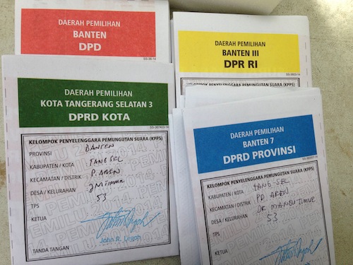 Politik uang masih menjadi tradisi yang lumrah – semalam sebelum Pemilu berlangsung pembantu saya masih menerima amplop berisikan Rp 100,000 dari PKB. Yang kebagian amplop bukan hanya dia, tapi juga anaknya, suami anaknya, dan banyak orang sekampungnya. Di Sukabumi, tempat orang tua pembantu saya tinggal, caleg-caleg PDIP mendatangi orang-orang yang sakit, membantu biaya pengobatan sampai rawat inap, hingga jutaan rupiah, dengan syarat mencoblos PDIP saat Pemilu. Kelompok pengajian mama saya juga sering didatangi berbagai caleg dari berbagai partai yang juga membagi-bagikan amplop, yang kemudian langsung dikembalikan oleh mama saya dan teman-temannya, tanpa diintip berapa isinya.